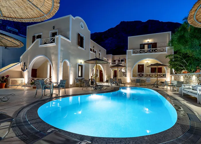 Schwarzer Strand von Kamari ist innerhalb von etwa 5 Gehminuten vom Hotel aus zu erreichen und der Flughafen Santorin ist etwa 10 Autominuten entfernt. Die Caldera von Santorin liegt unter anderem in etwa 3 km Entfernung. Auch Alt-Thera ist in ungefähr 10 Autominuten Entfernung vom Chez Sophie. Die Boat to Perissa beach befindet sich ziemlich nah am Hotel.